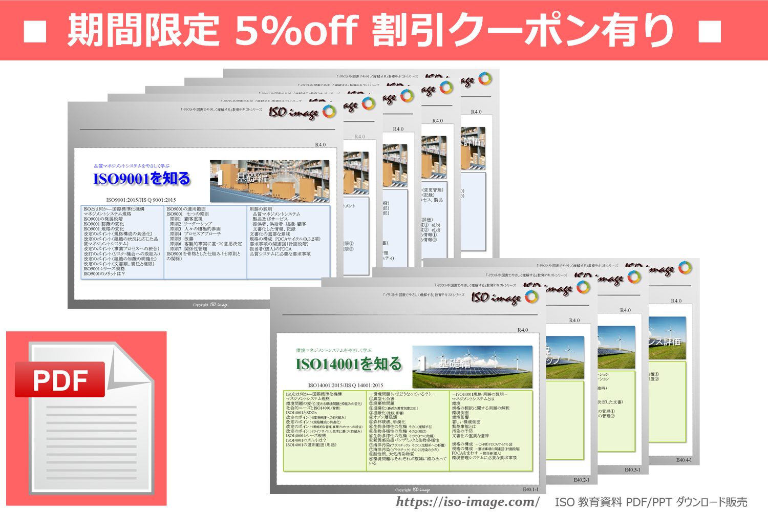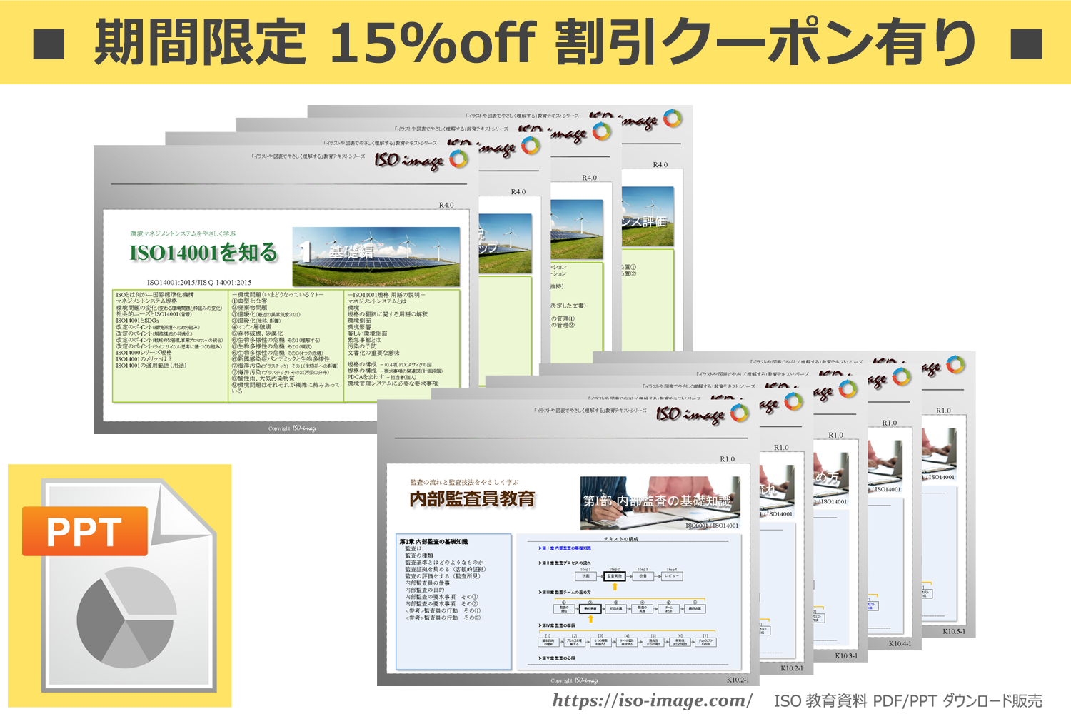 【PDF】 ISO14001 1~4(2015年版 R4.0) / 内部監査員教育 1~5(R1.0) セット