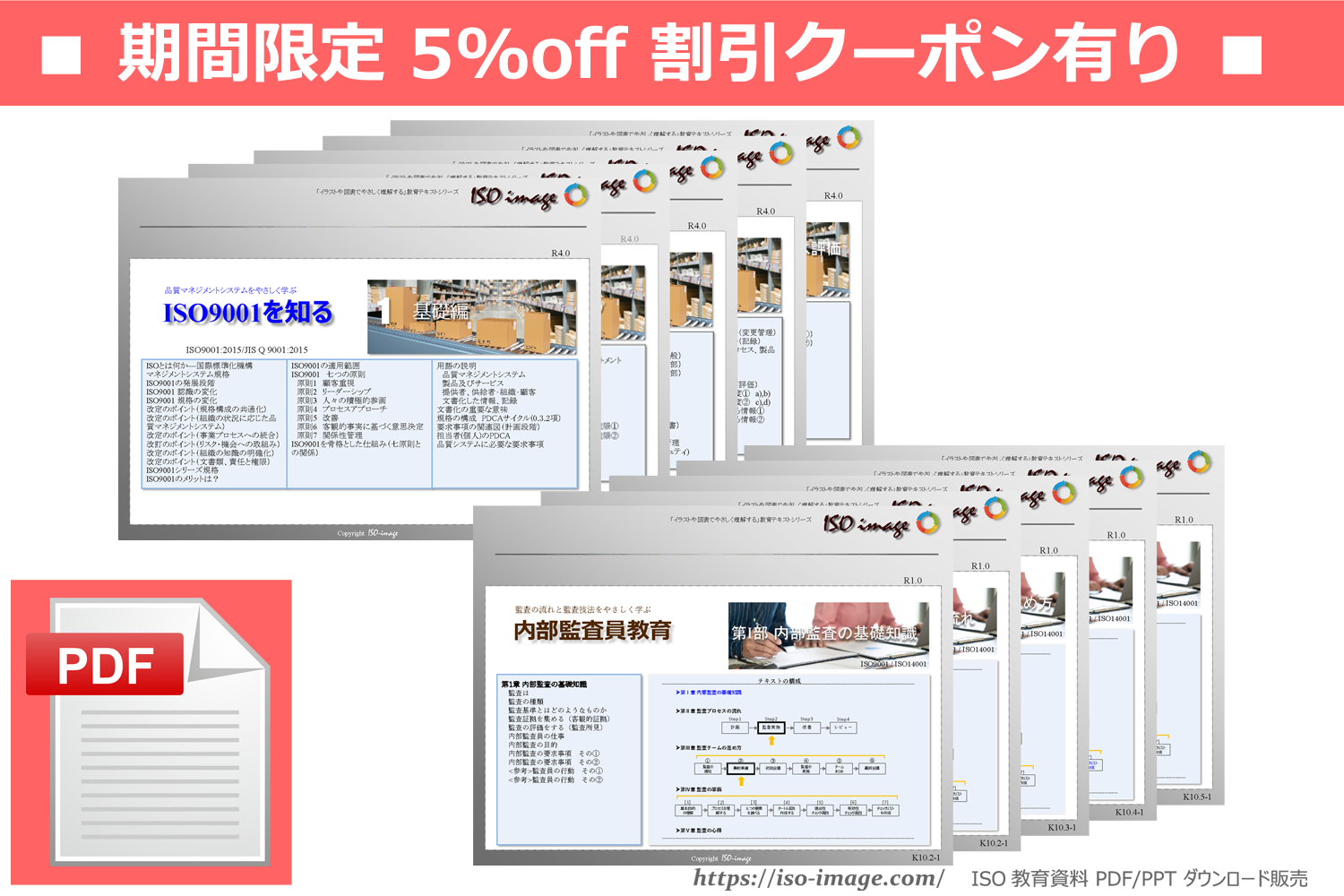 【PDF】 ISO9001を知る 1~5 / 内部監査員教育 1~5 セット(2015年版 R4.0)