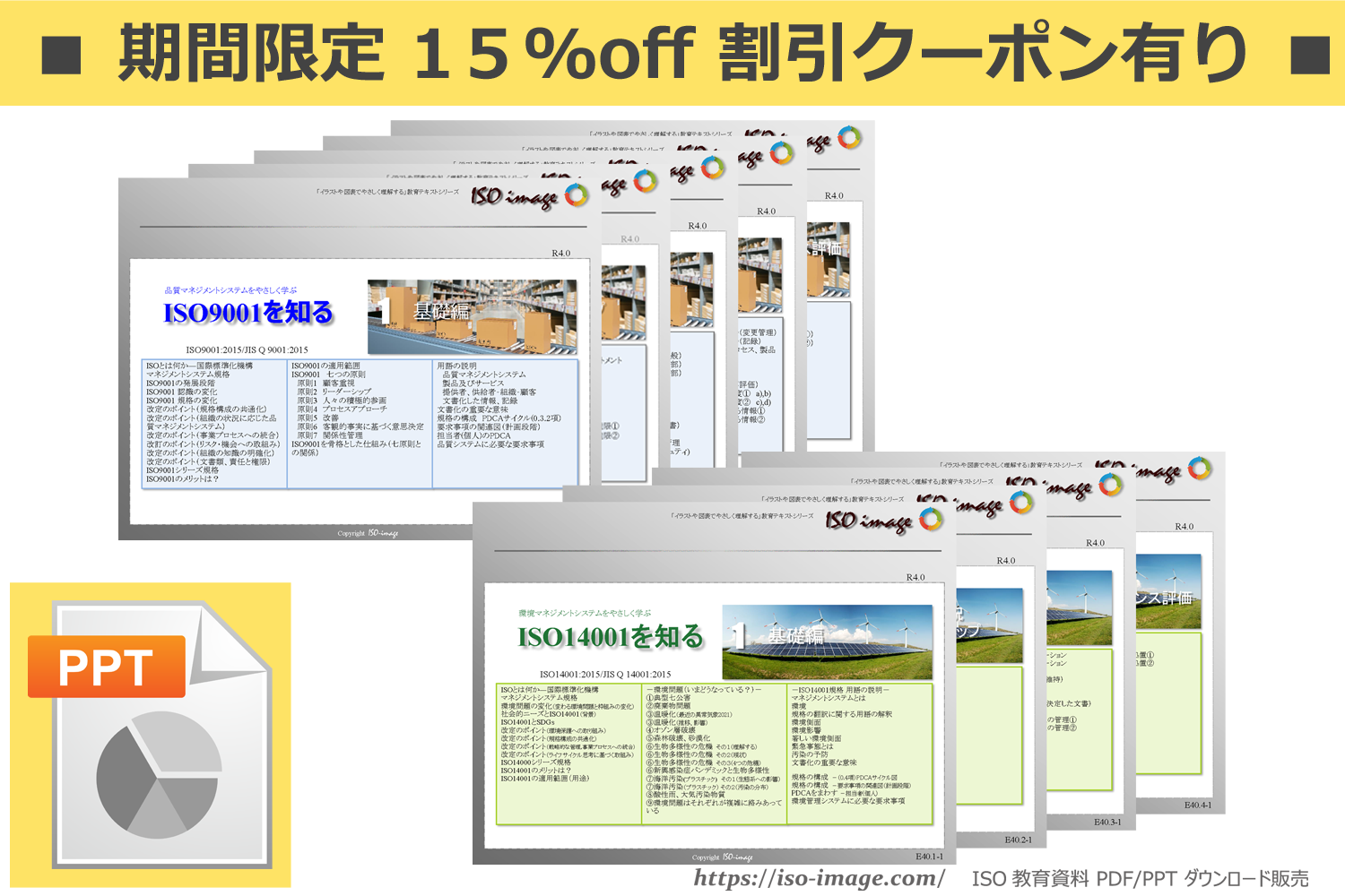 【PPT】 ISO9001を知る 1~5(2015年版 R4.0) / ISO14001を知る 1~4(2015年版 R4.0) / 内部監査員教育 1~5 (R1.0) セット